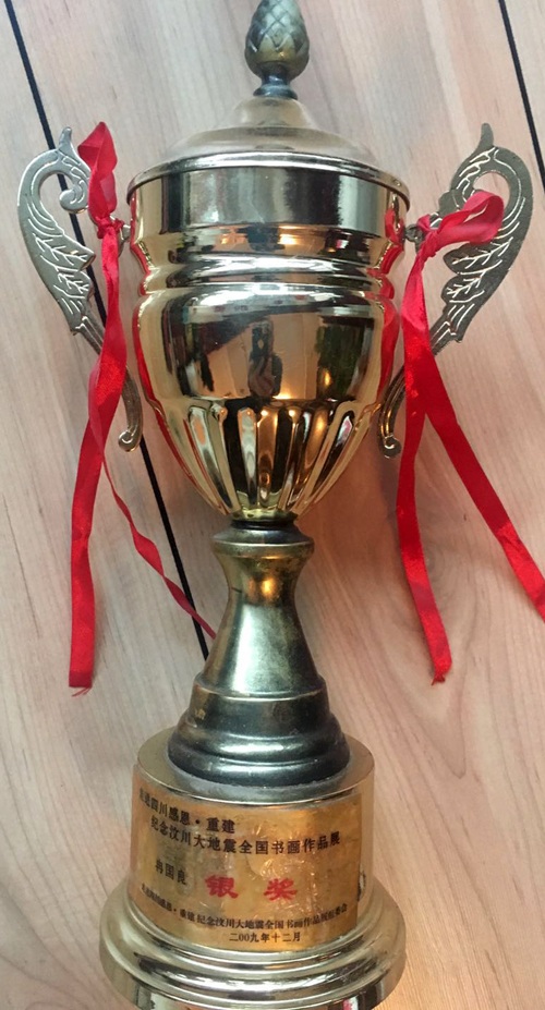 主要获奖情况:2009年荣获“范仲淹诞辰100周年全国书画大赛”金奖;2009年“走进四川感恩重建纪念汶川大地震全国书画艺术大赛”银奖;2010年“庆祝画圣吴道子艺术研究馆成立1020周年全国书画大赛”获银奖;2012年入选全国著名书法家于泉洲先生创建的百家墨迹,其作品曾作为礼品赠送省内外及香港、澳门、台湾等地,在全国农民日报于2012年被刊登,为个人写作品近180多次。2013年3月参加全国“中和杯”书画大赛获金奖。