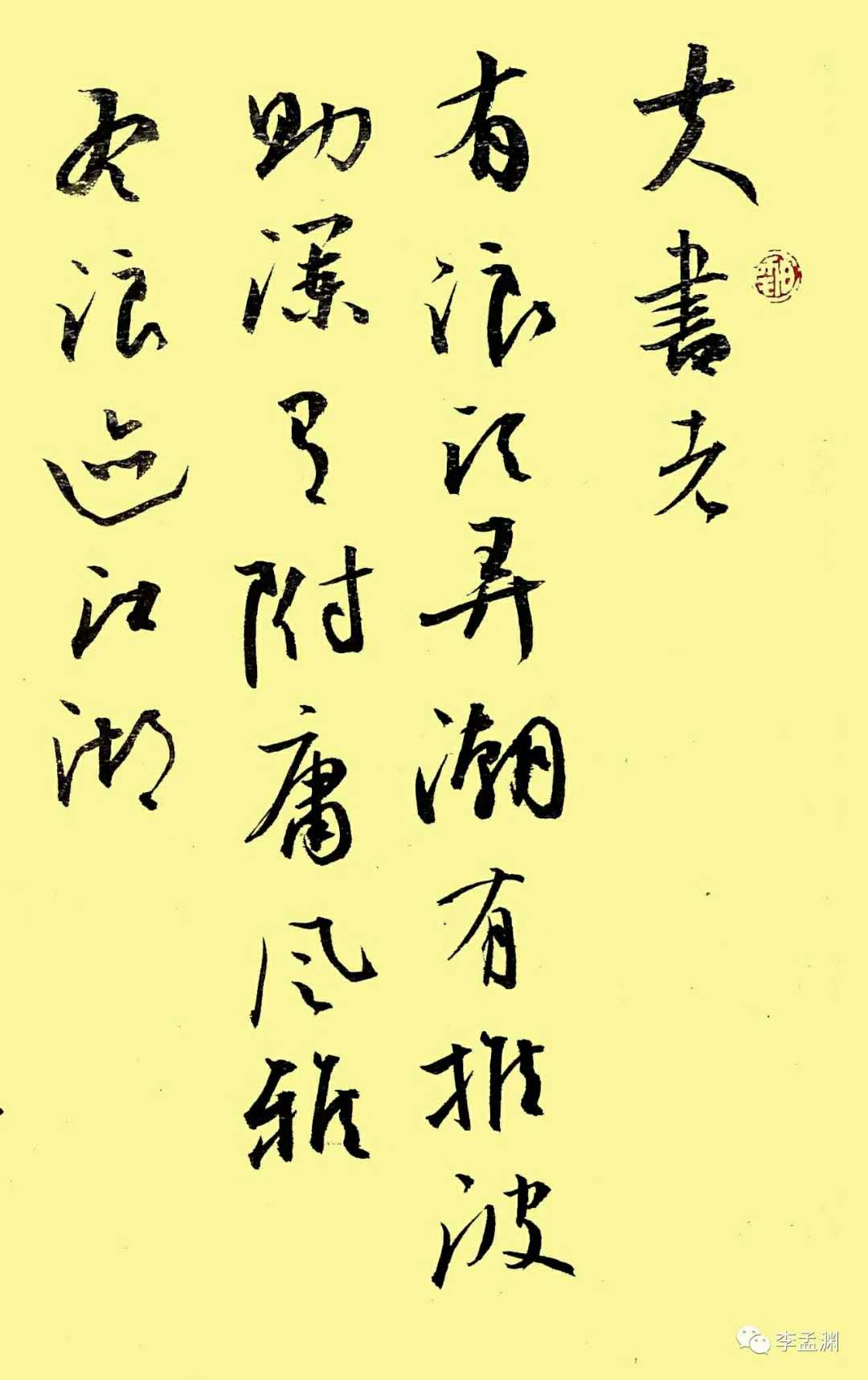 李孟渊,斋号听雪堂,洛阳新安人。1992年加入中国书法家协会,河南省书协楷书专业委员会委员,河南省美协会员,人民艺术创作院副院长,书法院院长,洛阳书协创作委员会副主任,洛阳书画院副院长,洛阳作家书画院副院长,洛阳理工学院艺术客座教授。书法作品先后参加中国书法家协会举办的首届新人展,第四、六、八届中青展,第六、九届全国展,首届兰亭奖。发表有《学书偶得》,《书法二十四品》等书法论著。曾在马来西亚,泰国,法国举办过书画展。