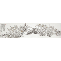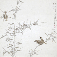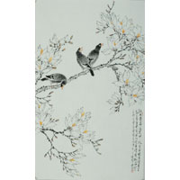 从某种文化意识出发,去结构作品,使之在追寻诗意中,建立了自己的风格;画面中因而出现了一派淡雅、清新与超然之境,而完全不同于时下流行画风中的“剑拔弩张”与刻意炒作,展示的是从容自然和不事张扬的深刻,用笔轻松、用色清淡,一切都在若即若离与虚幻飘逸之中,在极简洁的形式结构中产生极隽永的意味。